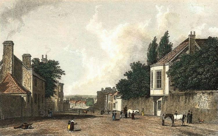 This old print is entitled 'Entrance to Newmarket 1830'