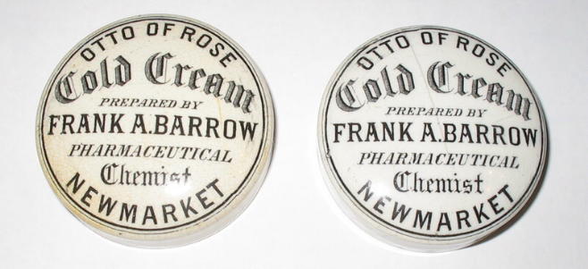 As well as often being minature works of art, Pot Lids can give an interesting insight into local history. Graham Evans published a book in 2008 giving pictures and details of 215 East Anglian pot lids, several of them advertising Newmarket chemists. We are indebted to him for the images below. (See also Corrrespondence December 2006)