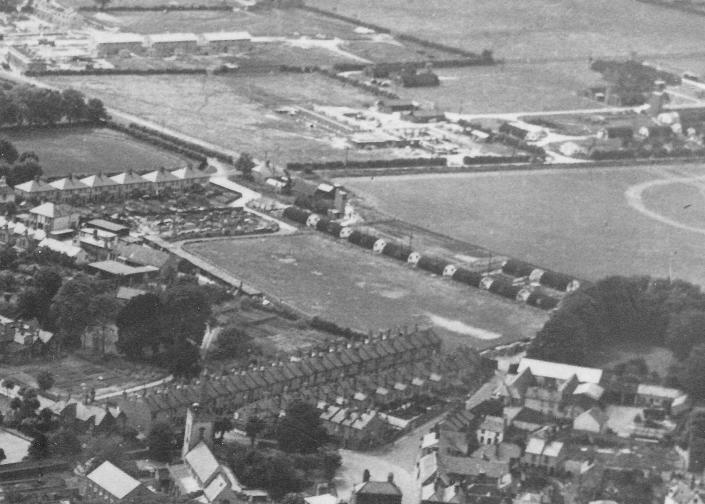 An aerial shot circa 1952, showing the Nissen Huts in Depot Field