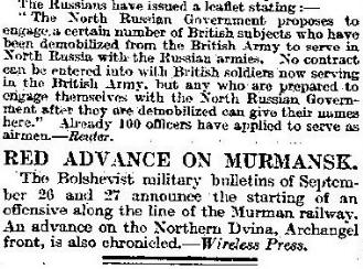 Firstly military assistance was sent to help the pockets of resistance in the ports of Archangel and Murmansk (see contemporary press reports below).