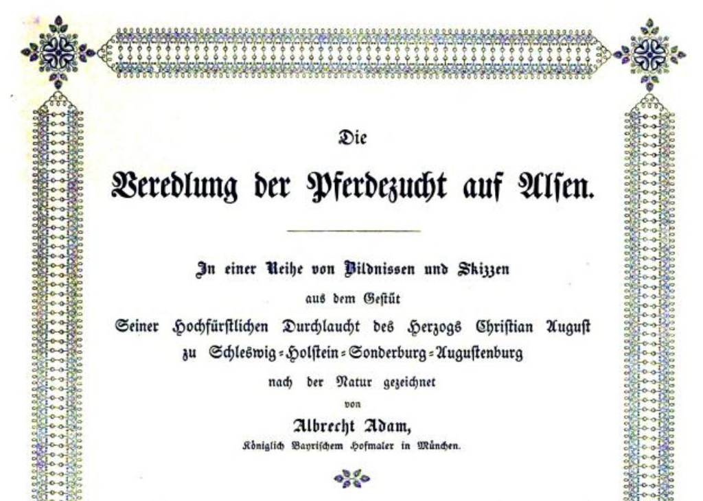 "Die Veredlung der Pferdezucht auf Alsen. In einer Reihe von Bildnissen und skizzen" - "The Refining of Horse Breeding on Als. In a series of