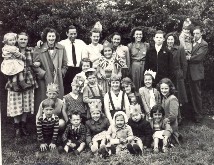 A happy party of Houldsworth Valley residents celebrating Queen Elizabeth II's Coronation in 1953