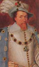 King James I. Reigned 1603 - 1625, also King of Scotland 1567 - 1625.