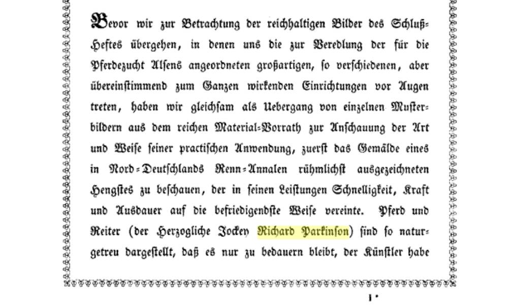 The enquirer, Danish historian Poul Krog, had been aware of the fairly successful equestrian career for a jockey called Richard Parkinson that had occurred in the middle of the 19th century in Denmark. Poul also knew that Richard had originated from Newmarket; hence the reason for contacting the NLHS. Richard’s equestrian career though had been brought to a very abrupt end - the reasons for this and what had subsequently happened to him seems to have been somewhat shrouded in mystery.Life in Denmark